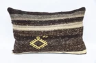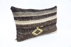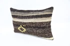 Kilim Pillows, Turkish Pillow, Body Pillow, 16"x24" Brown Cushion