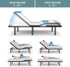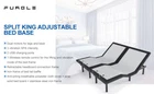 Raise the bar for a new standard of sleep with the Furgle Advanced Adjustable Bed Base. Sleeping in an elevated sleep position can help reduce sleep apnea, acid reflux, snoring, back pain, and more. This bed base puts you in charge of your own sleep position with a wireless remote, equipped with an integrated flashlight, to independently control your head and foot incline without leaving your bed. With two USB charging ports on either side of the bed, you and your partner won’t have to fight for an outlet, and both can have your own ports to charge your phones each night. Completed with metal post legs, this base offers full support for your mattress night after night. From lounging to recovering, the elevated controls and comfort features of this base help you sleep better and live better. Highlights: Easy installation 3-speed massage function attentive after-sales service Child lock, anti-mistake touch Adjustable bed frame, silent motor Wireless remote control, programmable Main Features: Adjustable & Quiet: Enjoy lifestyle and health with the Adjustable Comfort Adjustable Bed, Furgle bed frame adopts reliable 4 quiet motors that allow the head to be adjusted up to 60° and the foot up to 35°.You can choose from anti-snore, and Zero Gravity preset positions, or add your own memory position. 3-Speed Massage: Furgle adjustable bed has a 3-speed massage function to help you relieve muscle soreness and relax your body, you can control the back and foot massage individually, giving you the ultimate massage experience. Child-Lock: The unique child lock setting prevents you from accidentally touching the buttons while resting. After the handle is locked, the function of the adjustable bed will not be exected. Easy To Use: 13-key interactive wireless remote control with preset and programmable settings and for additional convenience two USB ports are built into the base to charge your electronic devices. Best Choice: Installation is simple and no additional tools are required. Furgle adjustable bed base is compatible with any mattress. We provide customers with a 30-day free return, if you have any questions, please contact us. Specifications: Size: Split King Material: Stainless Steel, Iron, Pine Wood Furniture Finish: Stainless Steel Brand: Furgle Item Weight: 278 lbs Maximum Weight: 700 lbs Adjusting angle: Back 60°(±3°) Leg lift: 35° (±3°) Size: 74.8 x 78.7 x 15 inch (W x L x H) Bed board thickness: 12 mm Wall thickness of iron bed frame: 1.2 mm Safety: Flame-retardant and anti-electronic interference Motor decibels: Under the mattress, <45 decibels Thrust: > 6000N