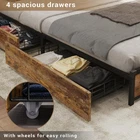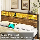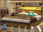 【Indystrial Style and Stylish 】 -The perfect combination of metal and wood makes this bed both sturdy and beautiful, the wood planks are MDF wood, Attached with Led Light , This Metal bed is the perfect match for your interior, whether industrial rustic or contemporary, Very suitable for your house style. 【LED Bed Frame】 -The Metal Bed with multifunctional LED light strips ,beautiful Multi-colour RGB LED Light(There are over 60000 colors to choose from),Phone App +Remote Control multiple control modes. You can freely set the brightness,color,mode and timing function,and design your light show to your heart's content. with RGB LED Lights Beds Makes Your Life Smarter,more suitable for your needs. 【Storage Headboard with Charging Station】 -Built in 2 Standard Plug Outlets & 2 USB Ports , Which is very convenient for you to charge your phones within easy reach or use a book light to read easily when you are lying on the bed.This bookcase storage headboard has 5 storage compartments and shelves, can be placed easily books, decorations, or some odds, providing you more storage space, It is very convenient and practical. 【Practical Storage Bed on Wheels】 -4 under the bed storage drawers are perfect for organizing clothing and come with black pads to keep dust out of the drawers, they are easy to pull in and out and it adds a lot of storage space for your bedroom. 【Durability & Stable】 -Made of sturdy metal bed frame structure,13 heavy-duty metal slats are closely arranged,16 support legs(middle 6 legs are height adjustable),Two solid metal center support bars, with a load capacity of 1200lbs, high-quality hardware ensures bed frame stability and no noise, sleep with peace of mind. King Size LED Bed Frame This metal platform bed is the perfect match for your interior, whether industrial rustic or contemporary, Very suitable for your house style. Find More Pleasure though App King bed frame with 4 drawers, bookcase headboard ,Outlets and RGB LED lights King Bed Frame, Heavy Duty Support Frame, 16 Legs Design Very Solid Specifications Size King Product Dimensions 86.8" * 76" * 41" Weight Capacity 1200LBS Material MDF Board and Metal Strong Support 16 Steel Legs(Contains 2 rectangular legs)/ 13 Steel Slats Mattress Recommendation Standard Height 8"-12" Feature 4 Storage Drawers, 5 Shelf Bookcase Headboard, Bulit in RGB LED lights and Outles Box Spring Required No