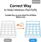 Soft and Comfortable. Overfilled with 4D spiral fiber which traps air that enables the mattress pad to breath and keep its shape longer. Our Quilted Mattress Pad helps your expensive mattress last longer by protecting it from stains and general wear and tear, all while providing you an extra layer of comfort. Breathable and Cool to Touch. Made of high quality materials, the top surface will wick away any moisture or sweat, offering cozy and breathable sleeping environment. Cool and silent protection that doesn't disrupt your valuable sleep, makes you sleep well all night. Deep Pocket and Machine Washable. Deep pocket design effortlessly grips any mattress up to 21" and gives a smooth appearance once you applied. Constructed with beautiful quilted box pattern style to prevent fill from shifting. Tests show that it will keep shape even after more than 109 times machine washing. What You Can Get: Mattress pads are available in Twin 39" x 75", Twin XL /Twin Extra Long 39" x 80", Full 54" x 75", Queen 60" x 80", King 78" x 80" and California King 72" x 84". Customers' satisfaction is our top priority. Open Steps: Since it’s delivered in compressed package, it may look thinner than expected, please do the following steps before use: 1.Take out mattress pad. 2.Shake and pat it. 3.Tumble dry on low heat for 20 minutes. 4.It will take its shape and you will get a soft mattress pad.If you have any issues, please contact us anytime, and we will do our best to resolve them promptly. Product Description 1 Usage Steps 2 Colors 3 Mashine Washable 4 Sizes Is this mattress pad waterproof? NO. It's not waterproof,but it will protect your mattress form stains, keep your stay comfortable while preserving the life of your mattress. Will this mattress pad keep me cool? YES. This mattress pad does not generate heat, it will absorb moisture and keep you cool and dry. Perfect choice for hot memory foam. My mattress is too firm, I'm looking for something to make it much softer like a pillowtop, will this do it? This mattress pad do offer an extra layer of comfort but if you want a really soft deep lush bed, we advice you put this mattress pad on your 2 or 3 inch memory foam topper, it will make your bed heaven. MATTRESS PAD+ GEL MATTRESS TOPPER= HEAVEN! Will it flatten after a long time use? Overfilled 4D spiral fiber keeps this mattress pad fluffy for a long time. Even though it flatten some, just tumble dry on low heat for 20mins, it will regain fluffiness. Will TEXARTIST help me with my issue? TEXARTIST service team will always offer immediate answers to customers and fix problems.