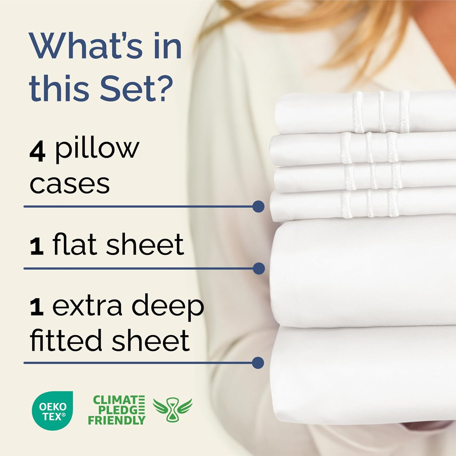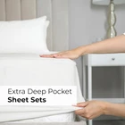 EXTRA DEEP POCKET KING SHEETS / EXTRA DEEP FITTED KING SHEETS: These bed sheets are for very deep pocket mattresses. They fit any mattress with pockets that are 18, 20, 21, 22 and 24 inches deep. There's stretchable elastic around the extra deep fitted sheet which stretches for a nice tug around your mattress. Perfect for extra tall & large mattresses. Rest assured these oversized sheets will stay on tight & stay in place! 6 PIECE SHEET SET: This bed sheet set comes with 4 pillowcases total all with a beautiful decorative embroidery design on each pillow case. The pillow cases have enclosure designs. This bedding set will accommodate your extra thick mattress perfectly. GREAT FOR DOUBLE PILLOW TOP MATTRESS: These bed sheets are perfect for mattresses with a 3 inch or 4 inch topper on top, memory foam toppers, big mattress pads, pillow tops, foam toppers, big foam toppers, pillow top mattresses and memory foam. These sheets will not come off. MICROFIBER: These are the softest type of microfiber bed sheets we have created. Super soft with a light feel. Not crisp like cotton. If you're accustomed to cotton sheets and you've never tried microfiber sheets we recommend you give these a try. They're even softer than cotton! DIMENSIONS & SIZES: Flat Sheet 111 wide and 102 long. Fitted sheet 78 wide and 80 long with 21 inch pockets (has elastic so it can stretch). All four pillow cases are oversized 20 x 40 inch. Product Description The video showcases the product in use. The video guides you through product setup. The video compares multiple products. The video shows the product being unpacked. Shop the CGK Linens catalog of luxury bedding products Add to Cart Add to Cart Add to Cart Add to Cart Customer Reviews 4.4 out of 5 stars 83,271 4.6 out of 5 stars 45,104 4.3 out of 5 stars 3,117 4.7 out of 5 stars 36 Price $59.99 $ 59 . 99 $13.99 $ 13 . 99 $49.99 $ 49 . 99 $192.00 $ 192 . 00 Fits Sizes 18 to 24 Inch Mattress 30" Length x 19" Height Twin, Full, Queen, King 18 to 24 Inch Mattress Triple Embroidered Pillowcases Triple Embroidered Triple Embroidered X Triple Embroidered Envelope Enclosure Pillowcases Envelope Enclosure Envelope Enclosure X Envelope Enclosure OEKO-TEX Certified Yes Yes Yes Yes Product Care Machine Wash Machine Wash Machine Wash Machine Wash Wrinkle Proof Yes Yes Yes Yes Fade Proof Yes Yes Yes Yes Stain Proof Yes Yes Yes Yes