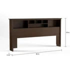 Store New Arrivals Add to Favorite View Feedback Contact Headboard King Size Freestanding with Built-In Storage Compartments in Espresso Description Brown Espresso Laminate Overall Product Measurements 81.5”W x 43”H x 11”D Add storage space to your bedroom with the King Bookcase Headboard. Designed to complement any decor, this headboard comes with six storage compartments for your bedside necessities and accessories. The varying compartment sizes add visual appeal and give you display options for large and small items. This free standing piece is designed to be paired with any standard king bed including our King Mate's Platform Storage Bed. Designed for use with standard king sized beds 6 storage compartments in varying sizes Finished in durable rich espresso laminate Constructed from CARB-compliant, laminated composite woods and a sturdy MDF backer Ships ready to assemble, includes an instruction booklet for easy assembly and has a 5-year manufacturer's limited on parts Assembled dimensions: 81.5 in. W x 43 in. H x 11 in. D Outside compartment dimensions: 22 in. W x 11.25 in. H x 9.25 in. D Inside compartment dimensions: 31.25 in. W x 5.5 in. H x 9.25 in. D; 10 in. W x 4.75 in. H x 9.25 in. D ABOUT US We are a family owned business and our goal is to offer discounted, high quality products so we can all share in the deals together! SHIPPING We are always working hard to ensure your package arrives as soon as possible. Please understand that some factors like weather, high postal traffic, and the performance of shipping companies are outside of our control. We offer free shipping to the lower 48 states and ship within 2-4 business days of payment, usually sooner. We do not accept P.O. Boxes. Please provide a physical address. For shipping outside of the continental USA, we only use eBay International Shipping. The item is shipped to eBay's shipping center and then sent to the rest of the world. International customers are responsible for all duties and taxes. Continue to check out in order to calculate costs for shipping the item to your country. RETURNS We offer a 30-Day Return Policy on items which you are not completely satisfied with. You have the option for a full-refund or an exchange of the item. PAYMENT We accept PayPal. CONTACT US This page content is yet to come Please ad us to your favorite seller and visit again later Thank You CUSTOMER SATISFACTION We try our very best to make sure every customer is completely satisfied. If there's a problem, message us! We're happy to help.