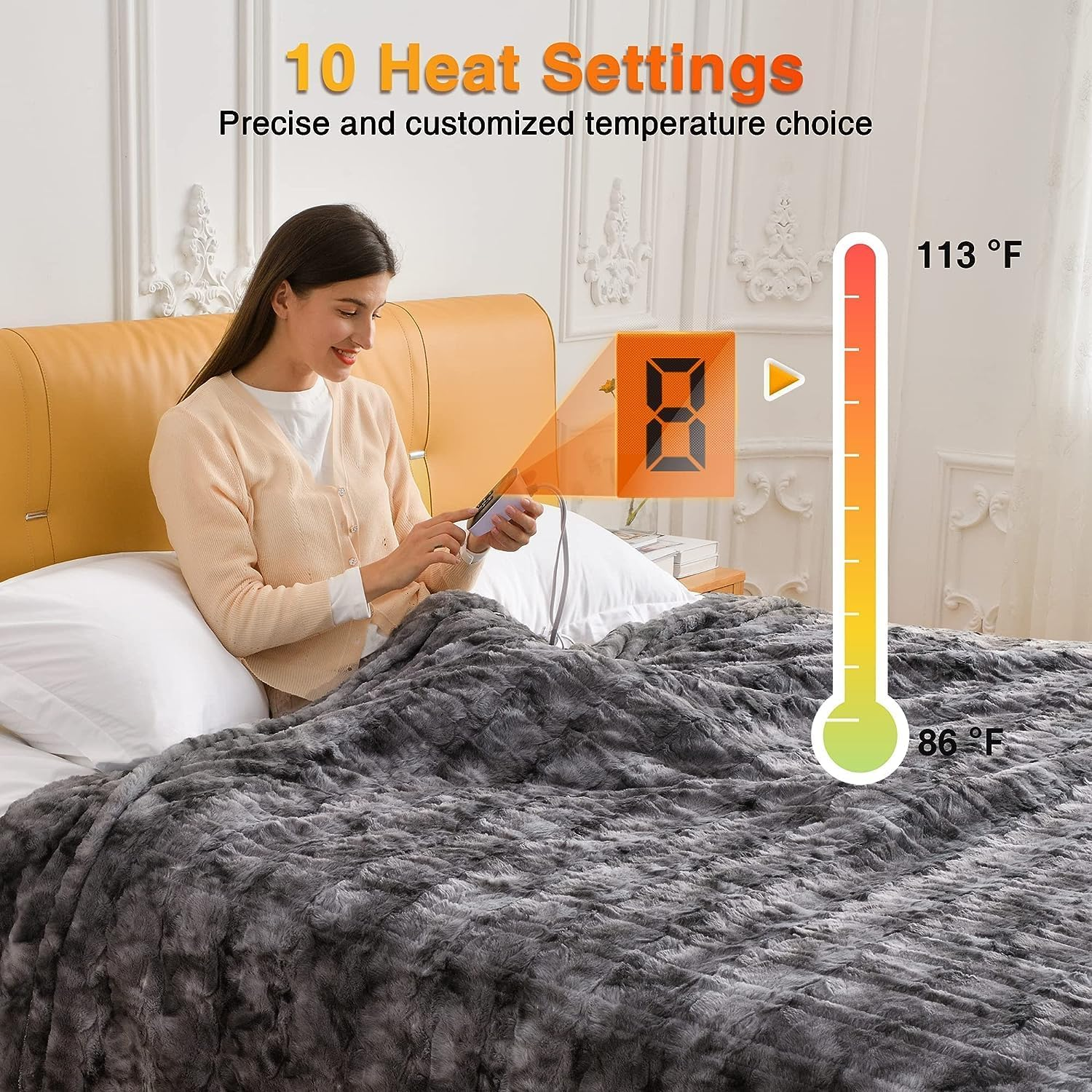 Polyester Premium Bedding Fabrics: Our heated throw blanket is made of fluffy faux fur; Durable, resilient and anti-dropping; Skin-friendly and suitable for full-body use; Gently nurture your skin to provide exceeding coziness and warmth Dual Controllers for Customization: This 90"x100" WOOMER heated blanket features dual controllers for A/B zone heating. With 10 heat settings (86℉ to 113℉) and a 0.5h to 12h auto-off timer, you can easily customize warmth and duration for maximum comfort Superior Heating Technology: Equipped with U-shaped double-layer heating wires, this blanket provides even, reliable warmth. Advanced fast heating technology ensures instant coziness in seconds, keeping you warm quickly and efficiently Safety Protection: ETL certified, Woomer’s heated blanket includes overheat protection for safety. The auto-off timer ensures you can sleep securely and worry-free, making it a safe choice for nightly use Hassle-Free Purchase: Enjoy reliable and warm after-sale service on our electric blanket, with assurances of prompt responses to all inquiries Product Description One Button Easy Control Use the controller to easily switch between the 10 heat levels from 86℉ to113℉ and set 0.5h -12h auto-off reservation. Fast Heat & Energy-Saving Adopts upgraded double layer heating wires to ensure efficient safe, fast and even heating. Long Cord 19ft long power cord allows you to conveniently reach power outlets anywhere in the room. Reliable and Caring We promise 5-year repair or exchange on our products plus 30-day return for comprehensive service and after-purchase experience from our customers. 1 Warm Plus 2 All Needs Fulfilled 3 Machine Washable