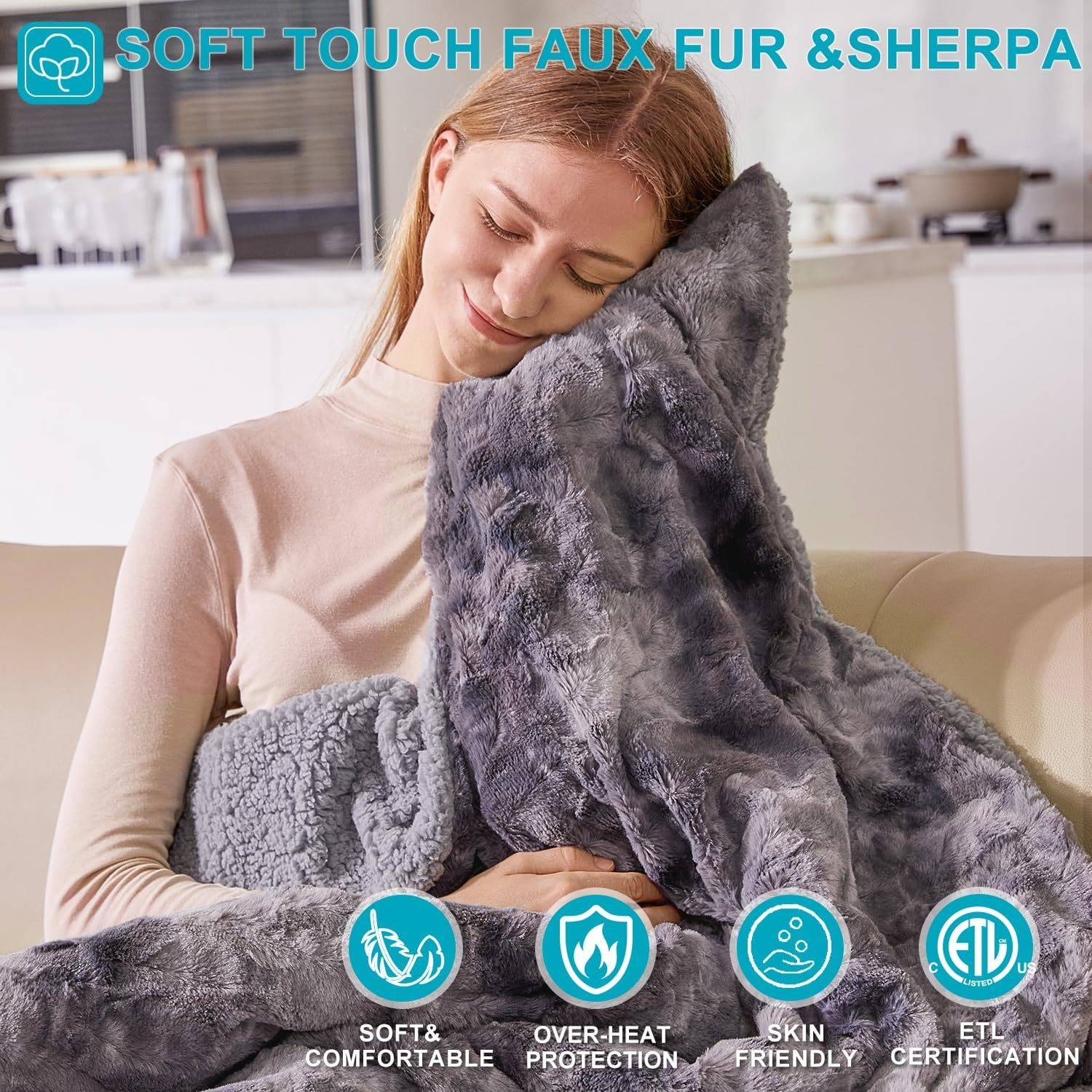 Heated Blanket, Eletric Throw Blanket, Soft, Warm, Reversible Feathersoft - Sher