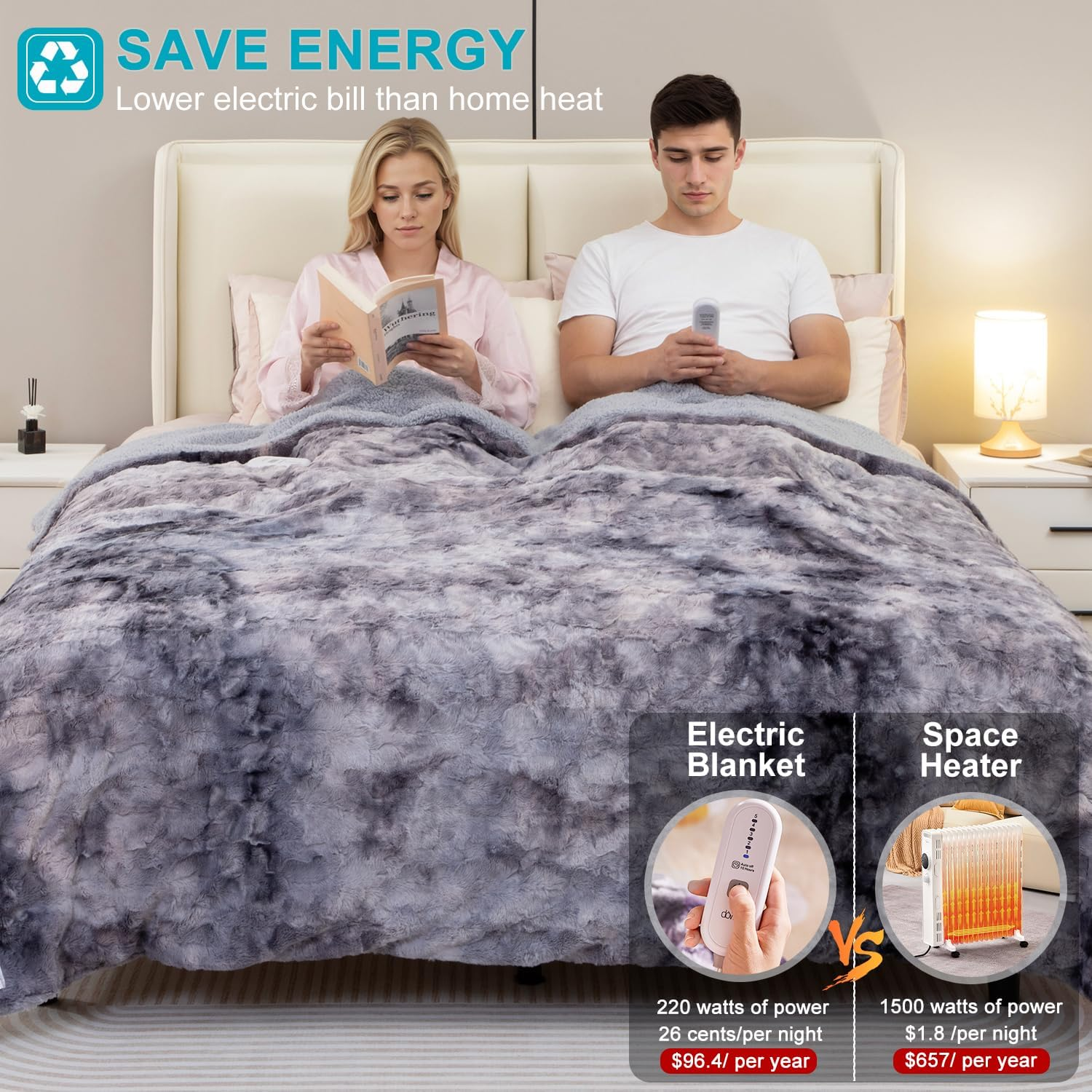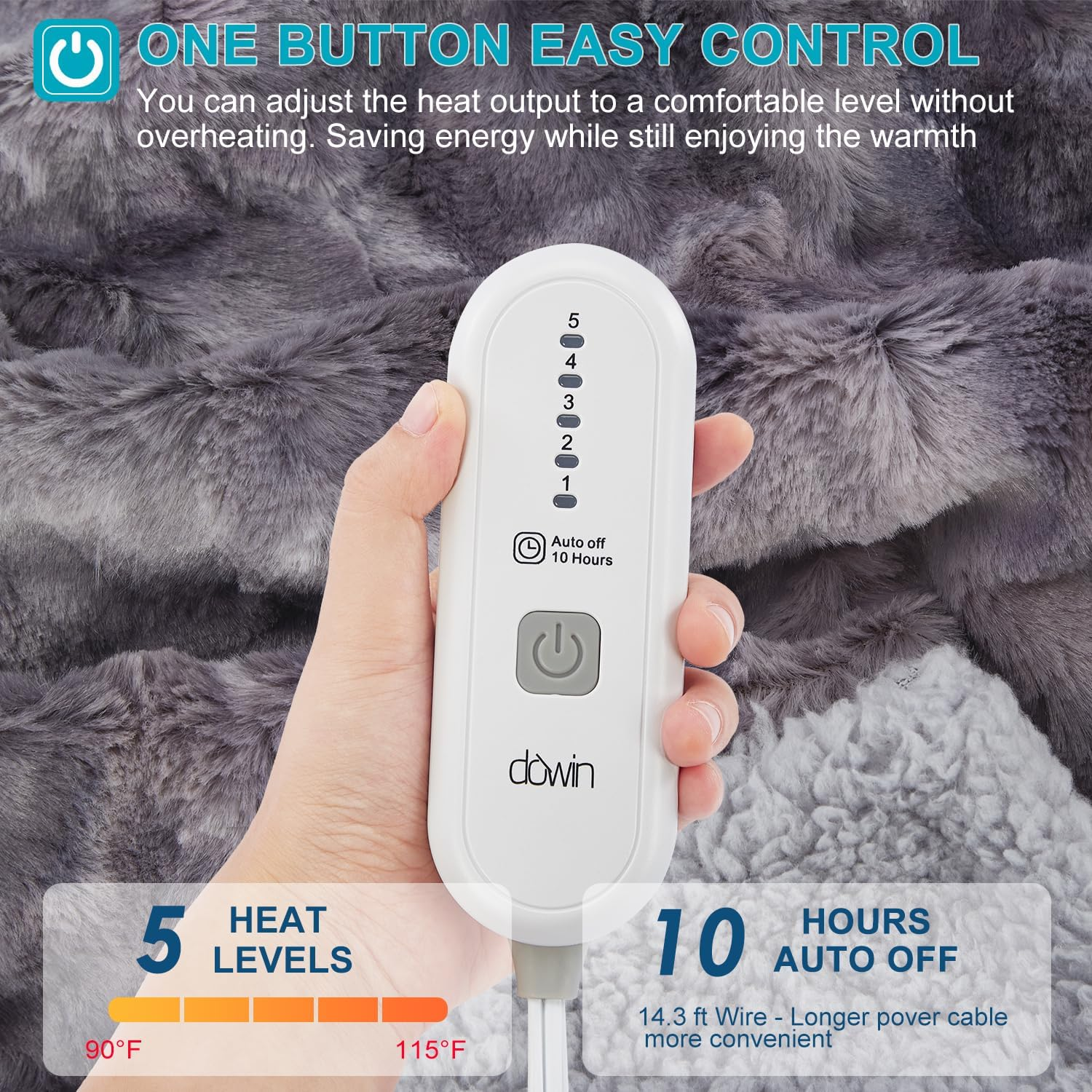 Store New Arrivals Add to Favorite View Feedback Contact Heated Blanket King Size, Dual Controllers Faux Fur Electric Blanket, Tie-Dye Plush Heating Blanket, Over-Heat Protect, 5 Heating Levels, ETL, Machine Washable (100"X 90" Grey) Description Item model number HMHB-K10090 Style Casual Weave Type Chunky Knit Number of Items 1 Pattern Tie Dye Country of Origin China Blanket Form Throw Blanket Theme Christmas Unit Count 1.0 Count Batteries required No Product Dimensions 100"L x 90"W Material Faux Fur Age Range (Description) Adult Seasons All, Winter, Fall, Spring Water Resistance Level Not Water Resistant Fabric Type 100% Polyester Item Weight 10.03 pounds Size King 100x90" Special Feature Corded Fabric Warmth Description Heavyweight Color Grey Recommended Uses For Product Reading, Napping Included Components Heating Controller Product Care Instructions Machine Wash Number of pieces 1 100% Polyester [Soft Double-Sided Design] Our heated blanket is made of dual-sided premium faux fur,keeping you warm and cozy while being light and breathable so you don’t wake up in damp sweat. [Dual Controllers & Even Warmth] The electric blanket queen/king size is designed with two zones, each with a handy controller for customized heating & timing. Use the controller to easily switch 5 heating levels from 90°F to 115°F. Built-in U-shape heating wires uniquely placed for even heat distribution that will offer you instant warmth. [Safe Warm& Reliable] ETL&FCC certified, Dowin heated blankets possess a 10-hour auto-off timer and overheat switch-off protection to maintain safety. Using the handheld dual controllers, which are more convenient to operate, allowing you to relax more peacefully. [Multipurpose Heating Blanket] It's a cape blanket, napping blanket, travel blanket, knee blanket, sofa blanket, decor blanket and outdoor blanket. Snuggle on your couch or bed with an ultra-warm faux fur heated blanket 14.27 ft Long power cord provides plenty of length to connect to outlets. [Easy to Clean] The chunky knit blanket has two parts: A soft blanket and one heating controller. Just take off the heating controller, which can be used as a normal blanket. Skin-friendly, machine washable, and dryable. It is a good home office helper and warm comforter. Product Description 1 Throw Size 2 Full Size 3 Queen Size 4 King Size Dowin Heating Series Add to Cart Add to Cart Add to Cart Add to Cart Customer Reviews 4.3 out of 5 stars 339 4.5 out of 5 stars 40 4.2 out of 5 stars 124 4.5 out of 5 stars 28 4.2 out of 5 stars 42 Price $49.95 $ 49 . 95 — $45.95 $ 45 . 95 $52.50 $ 52 . 50 $69.99 $ 69 . 99 Material Faux Fur & Sherpa Flannel&Sherpa Coral fleece Air Layer Flannel&Sherpa Dimensions 50" x60" 50" x60" 60" x 80" 78" x 80" / Machine Washable ✔ ✔ ✔ ✔ ✔ Heating Levels 5 5 5 5 3 Auto-off Time 4 4 10 10 2 ABOUT US We offer the best prices around on high quality products. Our E-store includes media such as books, movies, music and games while offering electronics, toys, sporting apparel, clothing, tools, general home, garden items and more. SHIPPING We are always working hard to ensure your package arrives as soon as possible. Please understand that some factors like weather, high postal traffic, and the performance of shipping companies are outside of our control. We offer free shipping to the lower 48 states and ship within 2 business days of payment, usually sooner. We do not accept P.O. Boxes. Please provide a physical address. For shipping outside of the continental USA, we only use eBay's Global Shipping Program.The item is shipped to KY and then sent to the rest of the world. International customers are responsible for all duties and taxes. Continue to check out in order to calculate costs for shipping the item to your country. Messages regarding eBay's Global Shipping Program MUST be directed at eBay EXCLUSIVELY. RETURNS We offer a 30-Day Return Policy on items which you are not completely satisfied with. You have the option for a full-refund or an exchange of the item. No returns are available on items shipped outside of the USA. PAYMENT We accept PayPal. CONTACT US This page content is yet to come Please ad us to your favorite seller and visit again later Thank You CUSTOMER SATISFACTION We try our very best to make sure every customer is completely satisfied. If there's a problem, message us! We're happy to help.