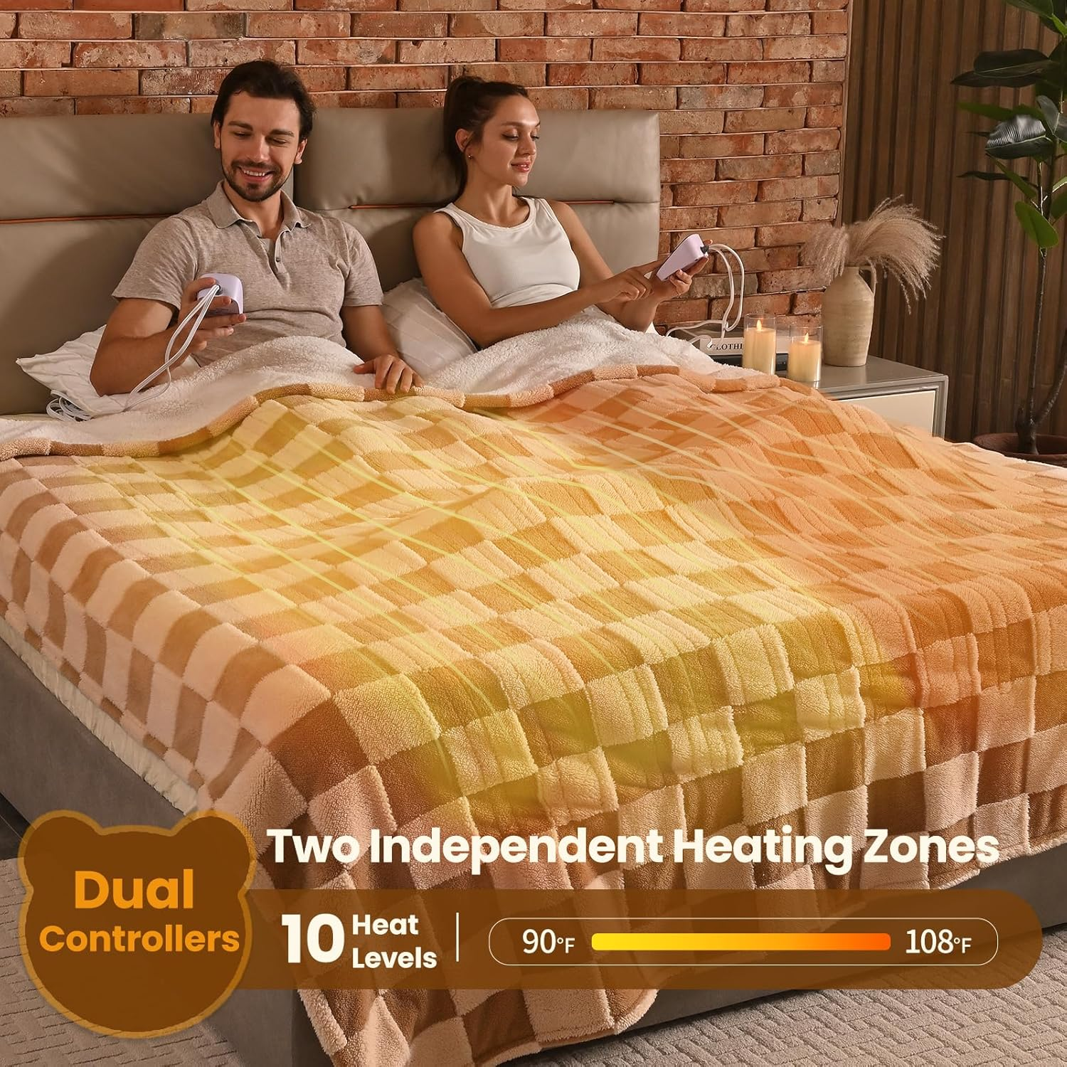 Store New Arrivals Add to Favorite View Feedback Contact Heated Blanket King Size 100" X 90" Dual Controller Electric Blanket, Reversible Brown Plaid Sherpa Weighted Heating Blanket, 10-Heat Levels & 1-12H Auto Off, ETL, Machine Washable Description Item model number BHETSP-BR5060 Style Modern Number of Items 1 Pattern Solid Blanket Form Throw Blanket Theme Heated Blanket Product Dimensions 100"L x 90"W Material Sherpa Age Range (Description) Teenagers, Adults, Elderly Seasons Winter, Fall, Spring Water Resistance Level Not Water Resistant Item Weight 11.97 pounds Fill Material Sherpa Special Feature Corded Fabric Warmth Description Heavyweight Color Brown Plaid Sherpa Recommended Uses For Product Reading, Napping, Working Fabric Type Dual Sherpa Product Care Instructions Machine Wash Size King Size 100" × 90" [Upgraded All-Sherpa Material] The heated blanket features a fully upgraded design made entirely of soft, plush sherpa on both sides. This luxurious all-sherpa construction provides an inviting surface for the ultimate relaxation experience. [Dual Independent Heating Zones for Personalized Comfort] The Bearhug heated blanket features dual heating zones, allowing you to customize your warmth with 10 temperature settings (90°F-108°F). [Convenient Auto Shut-Off Function (1-12 Hours)] Relax without worry thanks to the optional auto shut-off feature, adjustable between 1 to 12 hours. This practical safety mechanism ensures the blanket automatically powers down after your selected time, promoting energy efficiency and peace of mind. [Easy Care and Elegant Gift Packaging] Keeping your heated blanket fresh and clean is a breeze, as it’s machine washable for your convenience. Plus, it arrives beautifully packaged in a thoughtfully designed gift box, making it a perfect present for anyone who feels the cold. [Worry-Free Purchase with Round-the-Clock Support] Your satisfaction is our priority. If you experience any quality issues within 5 years, our 24/7 customer service team is here to help. We’re committed to providing quick assistance and addressing any concerns you may have. Product Description The video showcases the product in use. The video guides you through product setup. The video compares multiple products. The video shows the product being unpacked. Fast & Even Heating Experience rapid warmth with our blanket that heats up in just 30 seconds! The U-shaped heating wires are designed to distributeheat evenly. 19ft Longer Cord Bearhug Electric Throw comes with a 19ft extended cord, providing added convenience for reaching and controlling your comfort. Reliable After-Service Bearhug offers a 5-year repair, a 30-day return and exchange policy, and 24/7 online support. Purchase with peace of mind! Machine Washable The Bearhug electric heated blanket is machine washable once the controller is detached, ensuring hygiene and easy maintenance. Dual-Zone Temp Control for Customized Comfort Enjoy customized comfort with 10-level temperature adjustment (90°F-108°F) and dual-zone independent control to personalize the temperature for your individual needs. 1-12 hours Automatic Shutdown Design Experience hassle-free comfort with the 1-12 hour automatic shut-off function. This convenient safety feature powers down the unit after your selected duration, delivering energy efficiency and giving you peace of mind. Brown Plaid & White Sherpa for Cozy Warmth The plush sherpa lining is exceptionally soft and skin-friendly. This fusion creates a unique blanket that provides warmth and enhances any home décor. The Perfect Gift for Friends and Family The Bearhug electric blanket offers comfort, safety, and design, perfect for the cold-sensitive, elderly, children, friends, and parents. Treat loved ones to ultimate warmth. Discover more Bearhug brand products Add to Cart Add to Cart Add to Cart Customer Reviews 4.5 out of 5 stars 110 4.5 out of 5 stars 154 4.3 out of 5 stars 2,129 4.2 out of 5 stars 261 Price $139.99 $ 139 . 99 $139.99 $ 139 . 99 $109.99 $ 109 . 99 $139.99 $ 139 . 99 Dimensions King Size 100" × 90" King Size 100" × 90" King Size 100" × 90" King Size 100" × 90" Material Faux Fur & Sherpa Faux Fur & Sherpa Velvet & Sherpa Faux Fur & Sherpa Pattern & Color Teddy Faux Fur & Warm Sherpa White Floral Gray Dreamy Milky Way Heating Levels 10 10 10 10 Temperature 90°F-108°F 90°F-108°F 90°F-108°F 90°F-108°F Auto-off Feature 1-12 Hours Auto Shut-Off 1-12 Hours Auto Shut-Off 1-12 Hours Auto Shut-Off 1-12 Hours Auto Shut-Off Machine Washable ✔ ✔ ✔ ✔ ABOUT US We offer the best prices around on high quality products. Our E-store includes media such as books, movies, music and games while offering electronics, toys, sporting apparel, clothing, tools, general home, garden items and more. SHIPPING We are always working hard to ensure your package arrives as soon as possible. Please understand that some factors like weather, high postal traffic, and the performance of shipping companies are outside of our control. We offer free shipping to the lower 48 states and ship within 2 business days of payment, usually sooner. We do not accept P.O. Boxes. Please provide a physical address. For shipping outside of the continental USA, we only use eBay's Global Shipping Program.The item is shipped to KY and then sent to the rest of the world. International customers are responsible for all duties and taxes. Continue to check out in order to calculate costs for shipping the item to your country. Messages regarding eBay's Global Shipping Program MUST be directed at eBay EXCLUSIVELY. RETURNS We offer a 30-Day Return Policy on items which you are not completely satisfied with. You have the option for a full-refund or an exchange of the item. No returns are available on items shipped outside of the USA. PAYMENT We accept PayPal. CONTACT US This page content is yet to come Please ad us to your favorite seller and visit again later Thank You CUSTOMER SATISFACTION We try our very best to make sure 