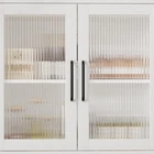 Kitchen Hutch Pantry Cabinet, Freestanding Kitchen Storage Cabinet with 2 Glass Doors, Versatile Storage with Drawer & Shelves, Cupboard for Dinning Room, Living Room Product Description About this item PLENTY OF STORAGE SPACE: The wide countertop provides plenty of room for kitchen utensils, such as a microwave and coffee maker, and the top shelf with 3 open compartments is perfect for sorting and storing bottles, cups, jars, or wine. The drawers can hold a variety of cutlery and jars etc. Keep your knives, forks, spoons, and plates free from dust. MULTIFUNCTIONAL STORAGE CABINET: With its streamlined design and ample storage space, this cabinet will fit well into any decoration themes in your home. It can be widely used as a kitchen pantry, a buffet in the dining room, a storage cabinet in the living room,m or a console in the entryway. STURDY AND DURABLE: High-quality materials and reinforced structure enhance the weight-bearing capacity of the sideboard to ensure durability, with an anti-tipping device for safety and reliability. MODERN DESIGN AND MAINTENANCE: White finish and black stainless steel hardware create a timeless design. To maintain its appearance, simply wipe with a damp cloth and avoid abrasive cleaners. EASY TO ASSEMBLE: Detailed assembly instructions and all parts are included in the package, please check the panels are broken and missing according to the list before installation, if you have encountered any problems, please contact us, and we will help you as soon as possible. Perfect for enhancing your kitchen's functionality while adding a touch of sophistication. Buy it and enjoy a clutter-free space! Upgrade your home organization! Freestanding Kitchen Storage Cabinet with 2 Glass Doors Spacious Countertop: Perfect for placing kitchen appliances, providing a convenient workspace. Open Shelves: The top shelves feature 3 open compartments ideal for organizing bottles, mugs, jars, or liquor. Organized Drawers: Equipped with 4 drawers, including 3 on the right, designed to neatly store your tableware. Keep your knives, forks, spoons, and plates dust-free and easily accessible.