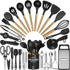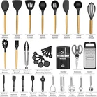 Material Silicone Color Black Item Weight 4.65 Pounds Is Dishwasher Safe No About this item 34PCS KITCHEN UTENSILS SET WITH HOLDER From the everyday kitchen spoons to the garlic crusher, This 34PCS kitchen utensils tools set included all the kitchen stuff you could possibly need to bring out your inner chef. This means you don’t have to spend extra money on repetitive utensil tools. This cooking utensils set includes a Slotted Spatula, Slotted Spoon, Turner, Pasta Server, Kitchen Tongs, Grater, Scissors, and so on. It is a great starter pack for a first apartment HEAT-RESISTANT, NON-MELTING-SOFT SILICONE One of the best things about Umite Chef silicone cooking utensils is their ability to withstand heat safely, each kitchen gadgetsl is heat-resistant up to a whopping 446°F and won’t melt (even leave it in the pot for a while) and our utensils head won't even become knicked or warped even at those extreme temperatures. The soft silicone won’t scratch non-stick cookware or your expensive pans VINTAGE WOODEN HANDLE -EASY TO CLEAN Each wooden handle is made of solid wood which is anti scalding. Smooth and comfortable to the touch, it completely prevents the heat transfer during the cooking process. Please note that each wooden handle has a slightly different color and texture. The one-piece design eliminates any gaps where food can get trapped, making cleaning a breeze. PLEASE NOTE that due to the wooden handle, We don't recommend soaking in water for a long time or dishwasher cleaning ODORLESS BPA-FREE, FOOD-GRADE SILICONE Each utensil is made of food-grade silicone, BPA-free, can use in any type of food. Stainless steel is wrapped inside to maintain its shape and flexibility, ensuring no warping. And it will not retain odors or colors like plastic kitchen utensils. ATTENTION Before the first use, the original smell will disappear after the silicone soaking in water and exposed it to the air for about 3 hours GREAT PRESENTS SET This kitchen utensil set comes with everything you need to get started cooking. A utensils holder can help you organized your kitchen tools well. If you moving or just need a new set of cooking utensils highly recommended. Perfect for house warming presents, wedding presents, mother's day presents, holiday presents and anyone else on your presents list Product information Item Weight 4.65 Pounds Is Dishwasher Safe No Shape Oblong Handle Material Wood Material Type Free Non-Stick Coating Free Recommended Uses For Product Cooking