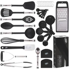 KITCHEN UTENSIL SET: Our utensil set have everything you need for a perfect cooking experience! kitchen gadgets and accessories are made of a combination of nylon and stainless steel to ensure no scratching or sticking. COOKING UTENSILS SET INCLUDES: Soup Ladle, Solid Spoon, Slotted Spoon, Solid Turner, Slotted Turner, Potato Pusher, Whisk, Grater, Spatula, Tongs, Ice scream Scooper, Measuring Cups, Measuring Spoons, 2 Dough Scrapers, 12 Hanging Hooks And a Beautiful Gift Box. HIGH QUALITY KITCHEN TOOLS DESIGNED TO LAST: No more worries about melting or rusty kitchen utensils. Our high-quality kitchen gadgets are polished with a special oil to prevent it from getting rusty. They are dishwasher safe, light weight and non-stick. Heat resistant is up to 350 F/180℃. GREAT VALUE NYLON AND STAINLESS STEEL UTENSIL SET: Don't spend a fortune buying each utensil individually. Buy yourself a complete kitchen tool set. Our 35 peice high quality set has everyting you need included. It is specifically designed to help you with all your food preparations, such as whisking, peeling, cutting, stirring, mixing, basting, baking, grilling, frying and serving up that perfect dish. GREAT GIFT IDEA: The Kitchen Utensils set come in a classy box ready to gift! Great for House Warming gifts new home, wedding gift, mothers day, holiday and anyone else on your gift list apartment must haves, college dorm room essentials.