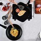 PREMIUM MATERIAL: Our kitchen cooking utensil set made of food-grade silicone head and hardwood handle.Cooking with the non-stick silicone utensils set will protect your cookware from any scratch,can be use well without melting, environmentally friendly and odorless, flexible with higher strength, used for a long time. EASY TO STORE AND CLEAN: The whole kitchen utensils set for nonstick cookware adopt a seamless design, and the soft silicone and wooden handle design make it beautiful and firm. Cleans up in seconds with warm water and soap, or dishwasher safe. Each end of the silicone spatula has a hanging loop, you can hang it up after cleaning to make it dry quickly. HEAT RESISTANT DESIGN: This silicone kitchen utensil High-temperature resistance range is 40°C -230°C (104°F-446°F), safe for hot food, stove, dishwasher, etc. The soft silicone design will not harm the coating of your pot and will not leave any traces, it is healthy and safe to use. Does not retain odor or color while you use the silicone cooking utensils. WIDE APPLICATIONS: This silicone cooking utensils set suitable for kitchen, restaurant, field camping, party barbecue, seaside vacation, etc. Great for chefs, bakers, pastry chefs, or amateurs. Ideal gift for anyone. Best for stirring, scraping, folding, cooking, and steaming all kinds of food. The non-stick silicone cooking utensils set is a must-have item for your kitchen. PACKAGE INCLUDES: You will receive 5 x silicone kitchen utensils, grey color, including 1 Spoon, 1 Spoonula, 1 Spatula, 1 Turner, and 1 Slotted Spoon.Each piece of silicone kitchen utensils offers a perfectly balanced weight and elegant design that will enhance your kitchen decor. If you have any questions about our silicone spatula set during use, please contact us in time, we will solve your problems as soon as possible.