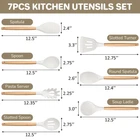 Silicone Kitchen Utensils Set of 7, made of food grade silicone and premium wood. No toxic substance leaching into food and won’t harmful to you and your families. The silicone heads are high heat resistant for no melting or deforming during. The silicone heads are strongly connected to wooden handles for not easily breaking off. Non-slip and ergonomic handles for comfortable grip. 7pcs kitchen cooking utensils for more convenient and practical in your cooking life. Specification List of Package: 7 pieces – pasta server, soup ladle, slotted turner, solid spoon, slotted spoon, spatula, spatula spoon Material: Silicone, wood Features: Nontoxic, heat proof, non scratch, non-stick, firmly connected Dimension (Length x Width) Pasta server – 12.35’’ x 2.25’’ Soup ladle – 12.5’’ x 3’’ Slotted turner – 12.75’’ x 3.3’’ Solid spoon – 12.5’’ x 2.75’’ Slotted spoon – 12.5’’ x 2.75’’ Spatula – 12.5’’ x 2.4’’ Spatula spoon – 12.4’’ x 2.6’’ Advantages Non Toxic – Made of food grade silicone and premium wood, ensuring nontoxic and healthy cooking. Heat Proof – Premium silicone heads are high heat-proof, no melting, no deforming or no bending when cooking. Long Ergonomic Handle – Long handle design keeps your hand away from the heat and wooden handles for better heat insulation to avoid burning your hand. Non Scratch – Soft silicone heads effectively avoid scratching your nonstick pans and pots’ surfaces. Easy Cleanup – Non-stick smooth surface helps easily clean by hands, make cleaning a breeze. Using Instructions 1. Please wash them with warm water before first using to wash off any residue left from manufacturing. 2. Please wash with soapy water and clean them with soft dishcloth or sponge to avoid scratching the surface. NOT DISHWASHER SAFE. 3. Please dry them immediately rather than air dry for a longer lifespan. 4. Please do not directly put the silicone kitchen utensils on the flame. FOOD GRADE SILICONE – kitchen utensils set is made of premium food grade silicone without any toxic substance and doesn’t react with food to affect its taste, Let you enjoy the pleasant and safe cooking experience HEAT RESISTANT – This cooking utensils set can withstand high temperature up to 446°F/230°C, No melting or deforming during cooking, Silicone head with high softness to keep your non-stick frying pans or stock pots from scratching, Extend their service life and long lasting for years, A great replacement of metallic cooking utensils ERGONOMIC WOODEN HANDLE – This silicone kitchen utensils’ handles are made of solid wood, Smooth surface without any sharp spurs to provide comfortable grip, Anti-scald wood handle effectively protects your hand from burning during heat transferring EASY CLEAN & STORE –Non-stick surface for easy food releasing to help clean easily, Hand wash recommended for better maintenance (No Dishwasher Safe), A utility hanging hole on the wooden handle for easily being hung neatly on the wall for convenient storage and drying faster after washing GREAT VALUE SET – The silicone cooking utensils set includes 1 X pasta server, 1 X soup ladle, 1 X slotted turner, 1 X slotted spoon, 1 X solid spoon, 1 X spatula, 1 X round spatula, 7 different shapes for meeting your daily basic cooking needs, Practical and versatile for turning, mixing, serving and more, A great helper in your kitchen