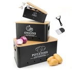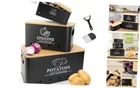 Menu 1. We require immediate payment. 2. We currently accept payment via eBay managed payments only. 3. Once payment is cleared, we will dispatch your shipment within 1-3 business days. Please refer to the "Shipping" tab for more information regarding shipping speed to your destination. Kitchen Vegetable Storage Set of 3, Metal Onion Garlic Potato Storage Set, Kitchen Canisters Vegetable Keeper Containers with Aerating Holes and Wooden Lid (Black) Product description STORAGE POTATOES ONION GARLIC: The vegetable kitchen storage set consists of 3 rectangular containers of different sizes to meet your storage needs for potatoes, onions, garlic and other foods. The potato storage (13x 7.1x 5.9in) can hold about 3kg of potatoes, the onion storage (10.1 x 6.2x 5.2in) can hold about 2kg of onions, and the garlic storage (8.7*4.6*3.5in) can hold about 6 - 9 garlic head. The Kitchen Vegetable Organizer Set keeps ingredients categorized and keeps your kitchen tidy UNIQUE DESIGN: Thick, sturdy bamboo lid fits the storage box perfectly (bamboo lid thickness: 1.5 cm). Ergonomically designed side handles make the Potato Pot easy to carry. The surface of the container is printed with "POTATOES", "ONIONS" and "GARLIC" for quick identification. Eliminates clutter and better organizes your kitchen STURDY AND EASY TO CLEAN: Vegetable Kitchen Storage Boxes Unlike glass containers, ceramic or clay containers, iron containers are less prone to damage and last longer. With a matte powder coating, these potato containers are resistant to flaking and rusting and can be cleaned quickly and easily with a damp cloth. Prevents vegetables from rolling and scattering and reduces kitchen clutter. Let you have a clean and tidy kitchen MAINTAINING THE FRESHNESS AND QUALITY OF VEGETABLES: Potato and onion storage box are fitted with small ventilation holes to ensure air circulation inside the container and reduce moisture accumulation. This is essential to maintain the freshness and quality of the vegetables. Store potatoes, onions, and garlic in a light, dry, ventilated area to extend shelf life BEST STORAGE SET FOR ORGANIZING YOUR KITCHEN: Vegetable storage set features a stackable, nestable design that makes the most of every inch of space in your kitchen, pantry and cabinets. These potato onion garlic storage boxes are not only practical but also beautiful, making them the perfect gift for friends and family. Each kitchen potato storage set comes with a peeler and slicer PLEASE MESSAGE US IF YOU HAVE ANY OTHER QUESTIONS, AND MANY THANKS FOR READING ALL OF THIS. Copyright ©#. All Rights Reserved.