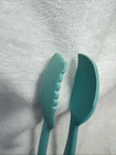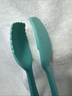 Add a touch of vintage charm to your kitchen with these one-of-a-kind KitchenAid TEAL ONE PIECE NYLON Tongs. This serving utensil is perfect for any home cook who wants to look stylish while protecting their hands from heat. The nylon material makes it durable and long-lasting, while the heat-resistant nylon handle ensures comfort and safety. This unique set includes one piece with a silver color, and it is perfect for any KitchenAid brand enthusiast. Whether you are a professional chef or a home cook, these tongs are a must-have in your kitchen. Get your hands on this vintage KitchenAid tongs set today and add a touch of elegance to your cooking experience!
