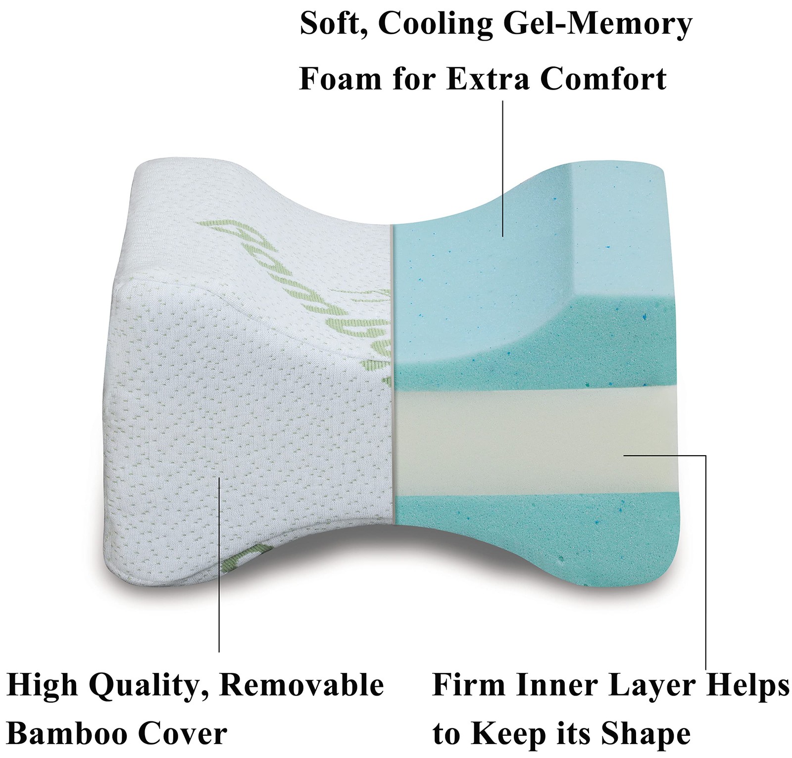 The new and improved Leg Spacer Pillow is designed to provide optimal spinal alignment to help reduce lower back, leg, hip, ankle, or joint pain. This carefully designed leg spacer pillow can be used to place between the legs to keep your legs, hips, and spine parallel and aligned, helping to improve circulation and relieve pressure on those areas for a good night sleep. This latest version comes with an outer gel-memory foam layer which feels soft, comfortable while its firm inner foam layer helps keep its shape, perfect as a body positioner pillow for a side sleeper. Includes a high quality, Bamboo cover (50% Viscose derived from Bamboo, 50% Polyester) which can be removed for easy cleaning. Size: 10 x 8 x 7.5 inches Best Leg spacer pillow, knee Pillow on the Market: This updated and improved version comes with an outer gel-memory foam layer which feels soft and comfortable while its firm inner foam helps keep its shape for enhanced comfort. Helps to keep your legs, hips, and spine parallel and aligned: Relieving strains on those areas and promote circulation. Perfect for a side sleeper: Can be used as a leg spacer and body positioner pillow for a good night sleep. Includes a high quality, bamboo cover (50% Viscose derived from Bamboo, 50% Polyester) which can be removed for easy cleaning. Size: 10" x 8" x 7.5" GUARANTEE - If you are not 100% satisfied, just return it in 30 days for a full refund.