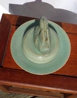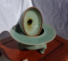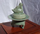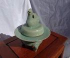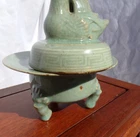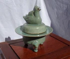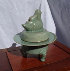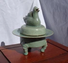 Cheongja Buddhist Ritual Celadon Censer Incense Burner Korean Joseon Dynasty (16th/17th Century) A breathtaking and exceedingly rare example of Korean Cheongja art pottery, this Buddhist Ritual Celadon Censer, Incense Burner is molded and carved in the elegant form of a Mandarin duck , symbolizing fidelity and harmony. The lid features a sanggam inlay border , meticulously executed in the style of the renowned Goryeo-era, reflecting the continuity of Korea’s rich ceramic tradition. The celadon glaze is exceptional, boasting a stunning color reminiscent of the sky-blue Ru kiln glaze of China’s Song Dynasty, a hallmark of refined artistry. This one-of-a-kind, exceedingly rare piece showcases the exceptional craftsmanship of the Joseon Dynasty and is a must-have for collectors of fine Korean ceramics. Condition: A well-preserved example, very good to excellent for age and use, no damage, chips, hairlines, or restorations. Measurements: 6.5 inches tall x 5.75 inches diameter. An extraordinarily rare and precious artifact for discerning collectors, embodying both historical significance and artistic beauty. Serious inquires welcome.