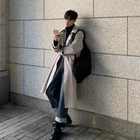 Korean Men Overcoat Long Windbreaker Streetwear Men Coat Outer Wear Clothing