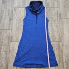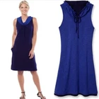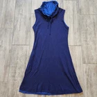 Kuhl Dress Womens Size M Sleeveless Vega Cowl Neck Blue Navy Reversible Modal Measurements are included in the photos Perfect for warm-weather travel and everyday wear, the reversible, über comfortable Kühl Vega Dress offers stunning looks and gives you two chances to cause a stir. Luxurious slub jersey made from Modal and organic cotton Feels great against the skin and drapes beautifully Center-front and center-back seams Reversible Cowl neck with drawstring Flush pocket on right side Side pocket Fall just above the knee Excellent Pre Owned Condition Bundle for a discount or send an offer