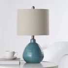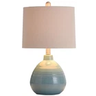 This beautiful ceramic table lamp will be the perfect accent in any family room. It comes with a standard rotary on/off switch, but even when it is not illuminated, you will enjoy the aesthetic it brings to the room. This lamp features a rotary on/off switch at the socket of the lamp This item is for dry locations, meaning it can be used in an indoor area that is not normally subject to dampness. May include a location subject to temporary dampness provided ventilation is adequate to prevent any accumulation of moisture such as the bathroom This product is manufactured in China This piece measures as 7"L x 7"W x 0"H - 11.4lbs. Crafted from: Metal, Glass, Glass Suitable for any indoor location Requires 1 x 5-watt E26 Medium base bulb (not included) - 120V Shade measures as 7"Dia. x 3"H Due to lighting and monitor differences, actual colors and finishes may vary slightly from what appears online.