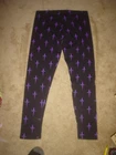 Up for Auction is: SKULL LEGGINGS THIS IS A (LIP SERVICE - STYLE 56-205) STRETCH LEGGINGS. PULL-ON STYLE WITH STRETCH ELASTIC WAIST BAND & STRETCHY FABRIC. FABRIC STRETCHES BOTH DIRECTIONS. NEW - NO TAGS. SLIGHT WRINKLING, LINT, ETC. FROM STORAGE. (PLEASE SEE ALL PICTURES & ZOOM IN FOR CLOSER VIEWS). LADIE'S/ JUNIOR'S SIZE 11. SMOKE-FREE PET-FREE PERFUME FREE WAIST MEASURES ABOUT 31.5" OR SO DEPENDING ON WHERE YOU MEASURE - UNSTRETCHED (ABOUT 15 3/4" OR SO ACROSS ONE SIDE OF WAISTBAND AT THE VERY TOP AS SHOWN IN PICTURES WITH TAPE MEASURE - NOT SURE WHAT RISE THE WAIST IS??) - FRONT RISE MEASURES ABOUT 7 7/8" OR SO FROM TOP OF WAISTBAND TO CROTCH SEAM. LENGTH ALONG OUTER SIDE MEASURES ABOUT 35.5" OR SO LONG. INSEAM LENGTH MEASURES ABOUT 28 1/4" OR SO LONG. MEASUREMENTS ARE DEPENDING ON WHERE YOU MEASURE - HARD TO GET EXACT. (PLEASE SEE ALL PICTURES). **PLEASE MAKE SURE IT WILL BE THE RIGHT SIZE & LENGTH IS ACCEPTABLE TO YOU BEFORE BUYING**. NOT SURE HOW TIGHT IT WILL FIT ON YOUR LEGS?? - DEPENDS ON YOUR LEG SIZE. PLEASE ASK WITH ANY QUESTIONS. WILL BE FOLDED FOR SHIPPING. LEGGING IS MADE OF A STRETCHY BLACK FABRIC WITH PURPLE SKULLS. (SELF: 90% COTTON & 10% SPANDEX. CONTRAST: 93% COTTON & 7% SPANDEX). THIS LEGGING IS VERY RARE, UNIQUE, & AWESOME. (ZOOM IN ON PICTURES TO SEE THE DESIGN, COLORING, FEATURES, ETC.). CHECK OUT THE OTHER AWESOME CLOTHING, SHOES, & OTHER ITEMS WE ALSO HAVE LISTED TO TEMPT YOU WITH!!! YOU WILL BE THE ENVY OF ALL!!! SOLD AS IS - NO RETURNS Good Bidding, Please see my other Ebay Items, Thanks Fionasjoy. I COMBINE ON SHIPPING ALSO