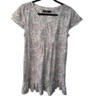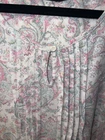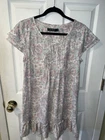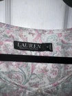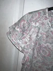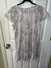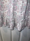 Brand: Lauren Ralph Lauren black label cap sleeve night gown is perfect for comfy nights sleep size medium 60% Cotton 40% Polyester. RLL Embroidered on left chest. Pin tucks at the bust. Key hole 1 button closure. Sleeveless with layered cap sleeve overlay. wide ruffle at the hemline. Color: Ivory background with floral paisley pattern in light pink and light green. chest 40” Length 34”