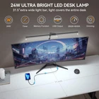 Table Lamp with Clamp for Home Offices:This 24 W LED desk lamp is designed with dual lamp heads, the light bar can be extended up to 31.5 inches, the height can be up to 31 inches, and the angle is adjustable.The desk lamp is suitable for multi-monitor workstations,home offices,large desks, study rooms,architects,computers, drawing,sewing,crafts,painting,reading,games and piano Multi-Light Modes:The office table lamp provides a wide range of brightness adjustments, including 7 brightness stepless dimming and 5 color temperature modes (2800K to 6000K).The modern desk lamp has a sensitive touch function and is equipped with a wireless remote control Eye-Caring Protection and USB Charging Port:This LED desk light illuminates uniformly,softly,flicker-free,glare-free,blue light-free and accurate.The desk lamp with a USB charging port allows you to charge your devices without a wall plug Memory and Timing Function:The memory function can keep the table lamp in the last used mode and brightness without resetting.The timer function can make the desk lamp turn off automatically after working for 1 hour to prevent us from being overworked Easy to Install and Durable:The LED lamp installation process is simple and easy.The LED desk lamps with metal compact base clamps fit easily in any space.The task desk lamp is made of aluminum alloy and ABS material, which is durable and sturdy