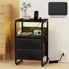 This Nightstand with Charging ports is a quick and simple way to update your home!Our nightstand with charging station has four colors and style to choose, Placed on your bedside, put on a little warm lamp, read a book before sleep, what a wonderful moment. Use our bedside table, get a blissful sleep.Multifunctional end table:Charging Station: 2 power outlets and 3 USB ports are enough to charge your phone, lamps, and smart speaker.Long power supply cord: 6.6ft long power supply cord support allows you to place your end table in most placesTight and stable structure: The reinforced metal frame and high-quality MDF board offer a large weight capacity. The top shelf can hold up to 100lbs.Large drawer with storage space: This nightstand has large drawer and 2 wooden shelves, the large storage space can meet all your demand.All the necessary accessories are together with our package.This night stand is great for bedroom, living room, entryway, etc Charging is a Breeze: With a built-in outlet including 1 Type C port, 2 AC outlets, and 2 USB ports, daily charging need would be satisfied. It adapts to phone, tablet, laptop, and more electronics Enjoy a Light Show: Light with 20+ RGB colors and 20+ dynamic modes would be a surprising bonus for your home setting. Freely adjust the brightness and color temperature by using the APP or the remote control. Create your best light show with this mesmerizing LED night table! Storage Helper: 2 fabric drawers offer sufficient storage space for your essentials or clothes. Keep tidy in your bedroom, living room, home office, closet, or dorm with this fabulous bed side table Explore Vertical Storage: Extra bars were added on the table side, and 2 hooks are provided for hanging keys or headphone. Build up a vertical storage space by hanging more stuff on the flank area of the night table Quality & Service Commitment: The fabric drawers of nightstand with an extra hard bottom can load up to 15 lbs. Thick wooden board and metal tube make a sturdy LED night stand. Assembly would be super easy with clear instructions and handy tools. Feel free to contact us if you need extra support, we will reach you within 24 hours