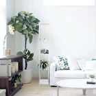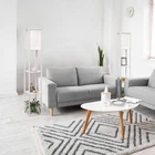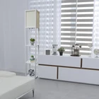 LF1014-WHT Etagere Organizer Storage Shelf Linen Shade Floor Lamp, White
