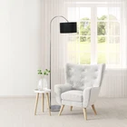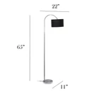 MODERN DESIGN: An arched brushed nickel base is paired with a black fabric drum shade for a modern, refined look suitable for your living room, bedroom, office, or foyer! LED BULB INCLUDED: This floor lamp includes 1 x 60W equivalent Type A19 LED Bulb, 8.8W, Warm White 3000K, 800 Lumens SWITCH SETTINGS: An easily accessible foot switch is located on the cord of this floor lamp to allow a quick and easy on/off function as needed. Lamp is also equipped with a 6 foot black plug in cord rooted at the base. ASSEMBLY REQUIRED: Full assembly is required for this floor lamp, prior to its first use. A step by step manual is provided for easy assembly! PRODUCT SIZE: Overall product size is L: 11" x W: 27" x H: 66" and weighs 8.18 lbs.