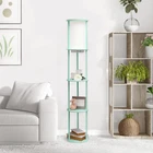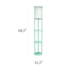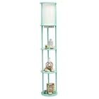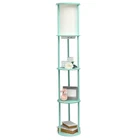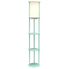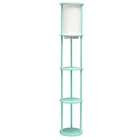 Elevate your living space with this stylish yet functional 3-shelf floor lamp. lluminate your room, showcase your favorite decor, and charge your essential electronic devices at the same time! This gorgeous piece adds versatility as the shelves can be used to display photographs and other memorabilia while the linen lamp shade casts a soft, warming light throughout your living space. This lamp adds sophistication and style to any home's décor. Check out all of the available base finish color options available to suit your needs. MODERN DESIGN: The beautiful linen shade complements the soft curves and aqua finish for a simple yet modern look that works well with all décor. The white shade casts a soft charming glow illuminating your favorite books or pictures displayed on the shelves. A convenient pull chain on/off switch is located directly under the shade for easy access. TECH READY: This lamp is equipped with 2 output 5V 2A USB ports and 1 outlet, perfect for charging all of your electronic devices all in spot! BUILT-IN SHELVES: Stay organized while showcasing your favorite pictures, books or candles on the 3 built-in shelves. Form and function come together to make a true statement piece for your home. ASSEMBLY REQUIRED: Phillips Head Screwdriver is required but not included with your purchase. Instruction manual is included. BULB REQUIREMENT SOLD SEPARATELY: This floor lamp uses 1 x 100W equivalent Type A medium base bulb, which is not included in your purchase but can be easily found online or your local hardware .