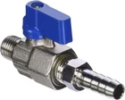 Chrome plated Brass Shut Off Valve for Beer Regulators 1/4" right hand NPT (National Pipe Threads) 5/16 hose barb outlet Manufactured in China Home brew Kits and accessories Chrome plated Brass shut off valve for beer regulators. 1/4" Right hand npt (National pipe threads). 5/16 Hose barb Outlet.