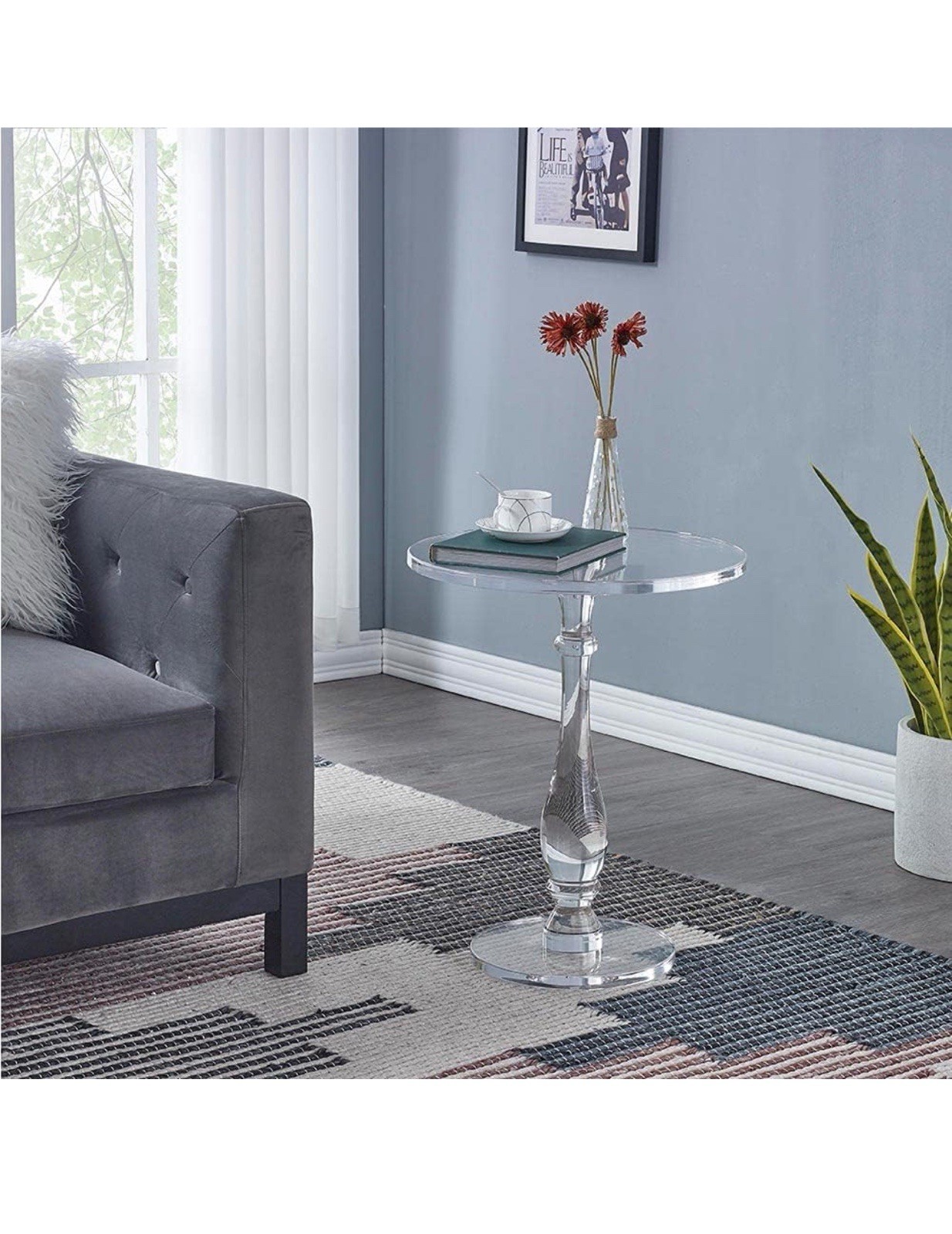 LIKENOW Acrylic End Table,Acrylic Side Table,Modern Nightstand with Clear Small Round Top and Solid Post for Living Room,Bedroom and Lobby 18.9x18.9x23.6High inches