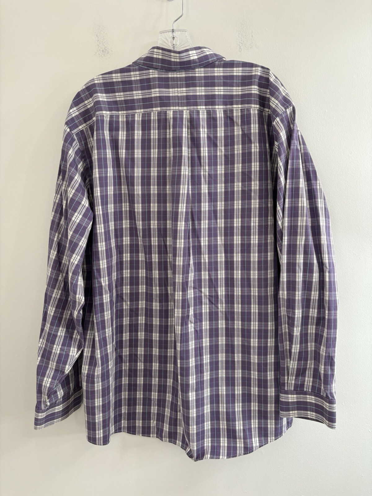 LL Bean men’s purple plaid shirt xl long sleeve traditional fit good condition 26 inches from pit to pit, 25 inches from shoulder to wrist, 30 inches from shoulder to hem