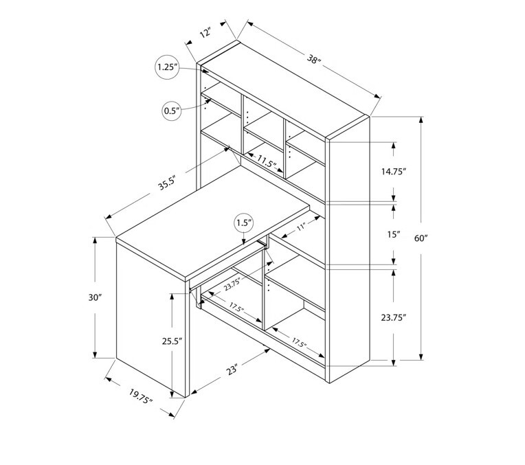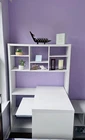 Pairing space to work and spots for storage, this writing desk is an ideal for small-scale offices and multi-purpose rooms. It includes a bookcase with five tiers of shelving and a desk with a keyboard drawer. We used this for art desk, however desk is well maintained, with no scuff marks or stain. Ideal for local pickup but shipping requires, I can separate the desk and ship in right package.
