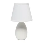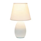 The 9.45" Chic and Sleek Oblong Mini Oval Ceramic Table Lamp offers a stylish lighting solution with its modern and elegant design. Featuring a smooth, oblong oval ceramic base, this lamp adds a refined touch to any tabletop. Its compact size is perfect for smaller spaces, making it an ideal choice for bedside tables, desks, or accent areas. The sleek lines and chic finish of the lamp enhance its versatility, seamlessly fitting into various interior styles. With its combination of functionality and style, this mini lamp provides a sophisticated glow that enriches your living space. CHIC OBLONG OVAL DESIGN: Features a sleek, oblong oval ceramic base that adds a modern and stylish touch to any room. MATCHING SHADE: Comes with a coordinating shade that complements the base and provides a soft, diffused light. STYLISH ACCENT PIECE: Adds both functionality and a touch of sophistication to any room, making it a delightful addition to your space. EASY TO USE: Convenient on/off switch on cord for effortless operation. BULB REQUIREMENT: This table lamp uses 1 x 40-Watt equivalent Type B E12 candelabra base bulb (not included).
