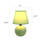A lovely, inexpensive, and practical table lamp to meet your basic fashion lighting needs. This mini globe lamp features a ceramic base and matching fabric shade. Perfect for living room, bedroom, office, room, or college dorm! Mini globe shaped ceramic base with matching fabric shade Perfect for living room, bedroom, office, room, or college dorm Height: 8.66" Shade diameter: 5.51" Uses 1 x 40W type B10 E12 Candelabra Base bulb (not included) LAMP IS A MINI LAMP - PLEASE SEE DETAILS FOR HEIGHT