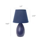 A lovely, inexpensive, and practical table lamp to meet your basic fashion lighting needs. This mini lamp features an oval shaped ceramic base and matching fabric shade. Perfect for living room, bedroom, office, kids room, or college dorm! Mini oval ceramic base with matching fabric shade Perfect for living room, bedroom, office, kids room, or college dorm Height: 9.45" Shade diameter: 5.5" Uses 1 x 40W type B E12 Candelabra Base bulb (not included) LAMP IS A MINI LAMP - PLEASE SEE DETAILS FOR HEIGHT