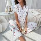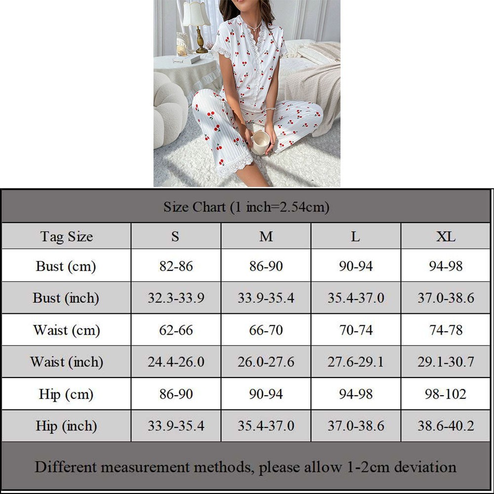 Lace Trim Short Sleeve Top and Long Pants For Cherry Print 2 Piece Pajama Set DESCRIPTION Details: *Tag Size: S -XL,Size reference provided below. Size Chart ( inch=2.54cm) Tag Size S M L XL Bust (cm) 82-86 86-90 90-94 94-98 Bust (inch) 32.3-33.9 33.9-35.4 35.4-37.0 37.0-38.6 Waist (cm) 62-66 66-70 70-74 74-78 Waist (inch) 24.4-26.0 26.0-27.6 27.6-29. 29.-30.7 Hip (cm) 86-90 90-94 94-98 98-102 Hip (inch) 33.9-35.4 35.4-37.0 37.0-38.6 38.6-40.2 Different measurement for methods, please allow -2cm deviation * Item Fabric: Polyester * Item Color:White ( As pictures show ) * Item Features:Women Lace Trim, Short Sleeve Top Long Pants, For Cherry Print, 2 Piece Pajama Set * Item Condition : * Item Description: ) Applicable G ender :Female 2) Clothing Length:Regular 3) Sleeve Style: Short sleeve 4) Elasticity: Moderate elasticity 5) Pattern:For Cherry 6) Style: 7) Suitable S eason:Spring, Summer, Autumn, 8) Application:Vacation,Holiday, Daily,Home,Club * Package Contents: *Top+*Trousers(Other items not included) How to choose proper size? Choose larger sizes if your sizes are same as the flat measurement size chart Notes: , The real color of the item may be slightly different from the pictures shown on website caused by many factors such as brightness of your monitor and light brightness. 2, Please allow slight (±2Cm)manual measurement deviation for the data. POLICES Shipping Payment WARRANTY We only ship to confirmed ebay Order addresses. Please comfirm that your Order address is in line with your shipping address. Please kindly note that the c ombined shipping is not provided because the shipping fee is calculated by weight. Also, the each additional item means exactly the the same color and size. It takes about 7 -15 working days to US; about 10-30 working days to other countries. Transit time may be a little delayed because of the bad weather and customs inspection . If you do not receive your item within 30 working days since payment finished, please contact us immediately for further assistance. Payment must be completed within 5 days. If you have any problems about payment, please contact us via ebay message. We strive for 100% customer satisfaction! Positive Feedback is very important to us. If you have any questions, p lease feel free to contact us via "Ask seller a question" . We will reply your email within 24 working hours.