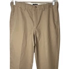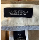 33" waist 30" inseam 11" rise Lands' End pants beige color solid pattern perfect for any occasion, whether it be a casual day out or a business meeting flat front straight leg style breathable cotton fabric slash pockets zip and button closure machine washable all items stored in smoke-free / pet-free home
