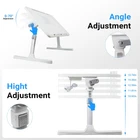 【🌿Eco-Friendly Design & Robust Features】Our lap desk is constructed from sustainable MDF and solid wood particle board, ensuring durability and eco-friendliness. It features a convenient drawer, a detachable book holder, dual adjustable laptop stoppers, an integrated cooling fan, an adjustable table lamp, a compact fan, and smooth-rolling sled legs. Its foldable design enhances portability, and it robustly supports up to 77 pounds. 【💡Enhanced User Comfort & Convenience】Equipped with an efficient cooling fan, this desk keeps your laptop at an optimal temperature. The adjustable lamp offers three brightness levels, perfect for various tasks like reading, writing, or relaxing. A movable laptop stopper prevents slips, and the side drawer provides storage for essentials. Sled legs offer stability and mobility, while the USB port connects the lamp and fan for a seamless experience. 【📐Adjustable Size for Optimal Use】Measuring 15.74 x 23.62 inches(60*40cm), this height-adjustable laptop table adapts from 10.62" to 15.74"(27-40cm), thanks to its convenient auto-lock buttons. Its foldable legs ensure easy storage, and the 24.4 inches leg clearance offers comfortable movement. The tabletop's angle is adjustable up to 70°, promoting better posture and reducing strain. 【🔍Multipurpose and Space-Efficient】Ideal for a range of activities — from work and meals to relaxation and recreation — this foldable laptop table is a compact and versatile solution. When not in use, it easily folds to a slim 2.7 inches, perfect for sliding under a bed or couch. It's a practical addition to any home, offering a multifunctional space for everyday needs. 【💌Customer Support Assurance】For any inquiries regarding our lap desks, please don't hesitate to reach out to us via email. We're always here to assist and ensure your satisfaction with your purchase.