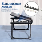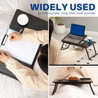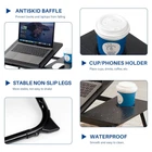 Adjustable Laptop Desk: This lap desk desktop comes with 5 adjustable tilt angle slots that allow you to customize the height to your perfect angle, reducing the stress on your eyes, back and neck. Laptop Desk with Cup Holder:The laptop desk comes with a cross-shaped cup holder (2.8" x 2.8" x 1.2") for easy access to water while working or reading in bed. The cup holder not only holds coffee cups or mugs, but also easily converts into a cell phone holder, which not only improves the ease of use, but also greatly enriches the multifunctional experience. Strong & Stable: Lap desk HDF and aluminum alloy tube frame ensures enough stability and durability, waterproof, wear-resistant and non-slip. High-strength connectors improve the strength of the table legs, better stability of the table legs, stronger carrying capacity, each leg has non-slip pads, even if you stay in a soft and smooth place, it won't wobble or tip over. Split Desktop Design: The bed desk compared to other models of desktop can be tilted bed table, more convenient to use, our desktop using part of the tilt design, the left side can be tilted desktop size (14.76*12.7in), compatible with most laptop computers, the right side of the desktop size (7.12*12.7in), tilted at the same time you can use the mouse, placing cups of water, food and so on, and is not easy to slide off. Space Saving: No assembly required, just open the folding legs to use, close the folding legs to store. Does not occupy space, can be placed on the bottom of the sofa, furniture crevices, etc. and easy to carry. Multiple Uses: This laptop lap desk can be used on bed, sofa, floor, desk, blanket, After folding the legs and adjusting the tabletop to the appropriate angle, place it on the tabletop and use it as a desktop stand for your laptop. can be used as a travel table, breakfast table, bed tray, bookshelf, art drawing desk, diamond painting desk, picnic table, beach table, portable desk, study table, lap table, workbench and so on