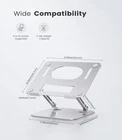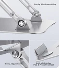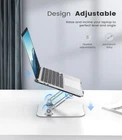 Ergonomic Design. Utilizing ergonomic design, this laptop stand can be adjusted flexibly to your preferred height and tilt, helping you relieve shoulder impingement, neck pain, back pain and improve your posture. Universal Use. Designed with a heavier base and a sizable panel, this aluminum laptop holder supports up to 17.6lb weight and works with laptops, notebooks, tablets, and more from 11inch to 16inch. Stable and Secure. Featuring sturdy construction and non-slip rubber pads as well as protective hooks, this laptop riser ensures the stable holding of your laptop and keeps it perfectly positioned. Neat Desktop. This laptop stand raises your computer and creates extra desktop storage for your keyboard, mouse, and other office items, providing a tidy solution for your desktop. The open design of the panel allows for proper airflow. Compact and Portable. This slim computer riser is easy to fold up to carry with you anywhere. Stylish and neutral black color fits in with any décor, perfect for office, college, home, and business use.