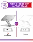 【Ergonomic Adjustable Height/Angle Design】Brocoon laptop stand comes with a variety of adjustable height and angle. This computer stand with ergonomic design can help you set up with the top of the screen at eye level and can prevent muscle fatigue and tension,eye strain and stay back pain-free, leading to fewer missed workdays and more productivity during work times. Laptop holder gives more flexibility in setting your workspace up to suit your requirements. 【Sturdy & Stable】Made of whole premium aluminum alloy laptop stand designed as modern feel Z-type, provides high quality stable to the stand. The computer stand is strong sturdy supports up to 20 lbs on top.Non-slip rubber on the laptop holder ensure your laptop hold in place and protective hooks prevent from sliding around. Maximumly protect your laptop. 【Ventilated Cooling & Foldable】Laptop stand with aluminum alloy material on top can absorb and discharge heat at ease. What's more laptop riser has heat vent design increase natural airflow help you laptop cooldown, hence running at optimal performance longer, and even prolonging the life of your laptop. This computer stand can easily fold and fit into your bag and laptop case. 【Wide Compatibility & Multi - Use】Brocoon laptop holder is compatible with all laptops from 10"-17". Suitable for MacBook, MacBook Air, Macbook Pro, Google Pixelbook, Dell XPS, HP, ASUS, Lenovo, Acer, Chromebook, and more notebook and Pad models. Multiple-use laptop stand in many situations like office, meeting room, coffee shop, library, kitchen and music playing house to hold the laptops. 【What You Get】Brocoon laptop riser you purchase can get - Laptop stand *1, Adhesive tape*1, Brocoon guarantee customer service. Brocoon computer stand service: 1-year warranty for free replacement, 7/24 service for our valued customer as a satisfactory result. Any questions, please feel free to contact us. We greatly pleasure in helping you at any time.
