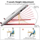Adjustable and Ergonomic - The laptop stand has 7 adjustable heights There will always be an angle for your comfort, helps to reduce eye strain, shoulder pain, back pain. lets you fix posture and easy typing Exquisite Workmanship Computer Stand for Laptop - Machined from anodized aluminum alloy, with sand blasted and brushed processes. The rubber on the holder hands sticks tightly and ensure your laptop stable on the stand. Rubber pads to protect your device from scratching or sliding. Foldable and Lightweight - Creative portable foldable design, the laptop stand can be folded to the size of 9.12*1.10 inches, it weighs only 0.6 lbs and come with a portable storage bag to make it easy to carry and use at the home, office, or other places Wide Compatibility - Suitable for laptops and tablets within 17 inches. It also fits for phone, tablets, kindle, books from 6 inches to 12.9 inches Ventilation and Cooling - The open aluminum design provides good ventilation and airflow to prevent your laptop from overheating. If you need to store your laptop, it can be folded flat to create extra space on your desk and keep it neat and organized.