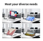 【Multi-Angle Adjustment】:The laptop stand adjusts your laptop to the perfect eye level, allowing you to maintain correct posture and reduce neck strain, and eye strain. Perfect for working at home, in the office and outdoors. 【Solid&Stablize】:The triangular support design is made of aluminum alloy and is more sturdy and durable, so that your laptop will not shake when placed on it. The surface is inlaid with silicone anti-slip pads to protect your laptop from scratches and will not slip when you use the laptop. 【Portable & Foldable】:The laptop stand weighs only 0.55 pounds. And it can be quickly folded into a small size of 9.9 inch×1.7 inch × 0.7 inch. It is equipped with a high-quality and durable velvet storage bag for easy placement anywhere, avoids scratches, and is easy to carry. 【Heat Dissipation】:Open hollow design with smaller contact area with the laptop and greater airflow for better cooling.【Broad Compatibility】:Our laptop stands are compatible with all laptops from 10 inch to 15.6 inch, such as MacBook Air/Pro, Lenovo ThinkPad, Chromebook, Microsoft Surface, Dell, HP, Acer laptops, Dell XPS, ASUS, Google Pixelbook, all tablets, eBooks, etc. 【Package Included】:You will get (1 Pack) laptop stand, (1 Pack) velvet drawstring storage bag, (2 Pack) Webcam Cover Slide in black and white.