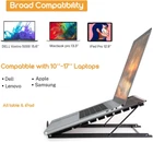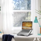 With fine-gauge metal mesh panels.... this sleek, sturdy laptop stand helps keep laptops cooler. The stand's forward tilt improves airflow around and under the laptop, while its flat mesh platform (where the laptop sits) absorbs and distributes heat away from the laptop. Both the tilted position and the mesh metal surface of the laptop stand work together to help prevent unwanted issues associated with hot laptops--from slower performance, malfunctions, and system crashes to the chance of overheating or general heat fatigue, which lead to permanently damaging your hardware ADJUSTABLE - You can adjust the height for increased airflow and comfortable reading or typing LAPTOP OR TABLET - You can easily place your laptop as well as tablet on the stand MEASUREMENTS - Measures approximately 9.5 by 7.5 by 7.2 inches (LxWxH) at max height