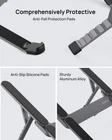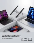 【Foldable & Portable】foldable laptop stand is made of aluminum alloy, weighing just 185g and folding to 127x44x21mm. It's easily adjustable and quick to assemble. With a storage bag, it's perfect for travel or daily commutes, providing convenience on the go. 【Ergonomic and Adjustable】Our desk laptop stand can be adjusted to comfortable angles. It corrects posture, relieves neck and back pain from long computer use, reduces visual fatigue, ensuring comfort while you work or type. 【Sturdy Construction】Made of high-quality aluminum alloy, this bi-fold computer stand supports up to 5kg. Anti-slip silicone pads and adjustable rubber feet keep your device secure, protecting it from scratches and preventing slipping. 【Enhanced Heat Dissipation】The open H-shape design boosts airflow and minimizes contact, enabling efficient heat dissipation. Keeping your laptop cool, it enhances performance and extends its lifespan. 【Broad Compatibility】Compatible with 10 - 16" devices like laptops, tablets, e-readers. It suits various brands like MacBook, ThinkPad, etc. Its adjustability makes it useful at home, office, or while traveling.