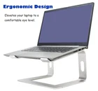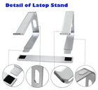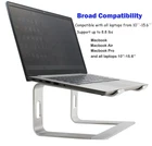 Ergonomic Detachable Computer Stand,Aluminum Laptop Mount Riser Laptop Stand for Desk Compatible with Air, Pro, Dell, HP, Lenovo More 10-15.6" Laptops WIDE COMPATIBILITY:Universal compatibility fits all laptop 10 to 15.6 Inches Elevates your laptop for optimal viewing angle and best ergonomics. Open design allow airflow and cooling for laptop, underneath space to keep your keyboard and mouse. The laptop stand is made of aluminum alloy, sturdy enough to hold up to 11lbs (5kg) of weight. The soft rubber pads are designed to protect your laptop from scratches or slipping Premium Aluminum alloy materials provides fashion look and smooth feel. Detachable and simple installation - The laptop stand can be conveniently disassembled into 3 parts. And You can easily reassemble it again easily. Compatibility:This Laptop Stand for desk is compatible with all laptops from 10''-15.6'', such as Air 13, Pro 13 / 15 / 2018 / 2017 / 2016, Lenovo ThinkPad, Dell, HP, ASUS, Chromebook, and other10-15.6 inches notebook PC sizes. High Quality:The laptop stand is made of aluminum alloy, sturdy enough to hold up to 11lbs (5kg) of weight. The soft rubber pads are designed to protect your laptop from scratches or slipping Detachable and Portable:With three aluminum support brackets, you can assemble the stand with ease. Thanks to this detachable design, the notebook stand can be disassembled into small pieces and is more convenient to take away. Heat Dissipation Function:Aluminum alloy material can help cool down the heat. With the open-back design, it offers the best ventilation and airflow to cool either your notebook or gaming laptop and prevent it from overheating. Ergonomic Design:The laptop stand elevates your laptop to a comfortable eye level and prevents you from hunching over your screen, which reduces neck and shoulder pain. Moreover, the edge of the stand is so smooth and prevents you from being scratched.