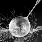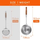 【& Durable】: Food strainer skimmer is constructed of 304 stainless steel, even the hottest temperatures making it perfect for deep frying and cooking using boiling liquids, last a long life without any corrosion, rust and break. With high heat resistance. 【Ergonomic Handle】: Long safety Wooden handle won’t transfer heat to hands, keep your hand from the hot oil / water. The hanging loop allows it to be hung for easy storage. Non-slip handle ensures a firm grip. 【Use With Ease】: It as a traditional Strainer Skimmer utensil, safely scoops up foods and drains away hot oil and boiling liquids. Food sits securely in shallow mesh basket to prevent splashes and mess; use for draining noodles or pasta, blanching vegetables, deep frying and more. 【Easy To Clean & 】: This kitchen strainer easy to use tool is resistant to rust which means cleaning will never be an issue. You can easily pop this in your dishwasher or wash it with soapy water, Designed with a hanging hole at the end of the handle for easy storage. 【Quick separation of hot oil or boiling water】: Skimmer ladle thousand hole design small holes, drain oil and soup more cleanly. fine food and spaghetti won’t fall through the holes, skimmer cooking spoon drain fast and won’t clog up with food. Suitable for filtering fried food, shrimp, chicken or carnitas, hot pot, dumplings, When scooping up the food, it is easy to let the liquid flow out.