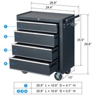 Specification: Length: 61.8cm (excluding handle) Length: 68.1cm (including handle) Width: 33cm Height: 64.6cm (excluding wheels) Height: 75.5cm (including wheels) Handle:33.5cm Drawer length: 53.2cm Height of the first drawer: 10.4cm Height of 2nd, 3rd and 4th drawer: 14cm Drawer depth: 27.7cm Wheel diameter: 10cm Package Include: 1*Tool cart Large 4 Drawers Rolling Tool Cabinet Metal Tool Chest Lockable Storage Cabinet Introductions: Optimize your storage and organization with the Single Base Cabinet 4-Drawer Steel Instrument Cart, designed to provide robust and reliable storage solutions for laboratories, medical facilities, workshops, and more. Featuring a durable steel construction with a sleek black finish, this instrument cart offers a generous 330-pound load capacity, ensuring it can handle heavy instruments and supplies with ease. The four drawers are perfect for keeping tools, equipment, and materials neatly organized and easily accessible. Ideal for environments where precision and efficiency are paramount, this cart combines functionality with style. Features : 1. Heavy-Duty Steel Construction:Durability and Reliability: Constructed from high-quality steel, this instrument cart is built to withstand daily wear and tear, providing long-lasting durability. Its robust design ensures it can support up to 330 pounds of equipment and supplies. 2. Sleek Black Finish:Professional Appearance: The sleek black finish not only enhances the aesthetic appeal but also provides resistance against scratches and corrosion, making it suitable for various environments, from laboratories to workshops. 3. Four Spacious Drawers:Ample Storage Space: Four large drawers offer ample space for storing a wide range of instruments, tools, and supplies. Each drawer is designed to slide smoothly and securely, ensuring easy access and organization. 4. 330-Pound Load Capacity:High Weight Tolerance: With a maximum load capacity of 330 pounds, this cart can accommodate heavy items without compromising stability or safety. It’s an ideal solution for transporting bulky equipment around your facility. 5. Mobility and Maneuverability:Easy Transport: Equipped with sturdy wheels and ergonomic handles, this instrument cart is easy to maneuver through tight spaces and across different surfaces. Locking casters ensure the cart stays in place when needed, enhancing safety during use. Specification: Length: 61.8cm (excluding handle) Length: 68.1cm (including handle) Width: 33cm Height: 64.6cm (excluding wheels) Height: 75.5cm (including wheels) Handle:33.5cm Drawer length: 53.2cm Height of the first drawer: 10.4cm Height of 2nd, 3rd and 4th drawer: 14cm Drawer depth: 27.7cm Wheel diameter: 10cm Package Include: 1*Tool cart Payment Delivery details Feedback About us Contact us Payment We require immediate payment. Delivery details Your item will ship within 1-2 business days of your cleared payment. We ship to your eBay or Paypal address. Please make sure your eBay and Paypal address is correct before you pay. It will come with a tracking number after we ship out,pls view the number on your "My Ebay " page. Feedback We will leave POSITIVE FEEDBACK after receiving the payment. Please contact us if you are not satisfied with the item after receive it. If you are dissatisfied for any reason, please donot be quick to leave negative/neutral feedback. We work hard to make sure EVERY CUSTOMER 100% SATISFIED and resolve any problem for you and always leave positive feedback to all our customers. Serious Buyer Only! Please place bid only if you agree with all the terms. About us Welcome to our Store – Your Trusted Partner for Premium Goods! Dear Valued Customer, At Our Store, we take pride in being your one-stop destination for top-quality products across home, garden, appliances, commercial & industrial supplies, health & beauty, and music & art. With over a decade of expertise, we’ve built strong partnerships with professional manufacturers who share our commitment to durability, innovation, and affordability. Why choose us? ✅ 10+ Years of Trusted Collaboration – Our long-term relationships with certified factories ensure you receive reliable, high-performance products every time. ✅ Unbeatable Selection – Whether you’re upgrading your home, office, or creative space, we offer curated solutions tailored to your needs. ✅ Competitive Pricing – Direct factory partnerships mean premium quality at wholesale rates, with no middlemen. From stylish home essentials to heavy-duty industrial tools, every item in our catalog is handpicked to exceed expectations. Your satisfaction is our guarantee! 🚀 Shop now and experience the our store difference! Fast shipping, easy returns, and dedicated support are just a click away. Let’s build something great together – your trust fuels our excellence. Warm regards!!!! PRO Store Contact us Our customer service team works Monday to Friday from 9:00am to 6:00pm GMP+8. If has a ny question,pls be feel free to contact us.