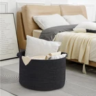 EXTRA LARGE BASKET: 22x22x14 inches XXXL baskets for the blanket. Big and deep enough to hold a couple of pillows and throw blankets. A good blanket storage solution in the living room ensures your throws, quilts, and blankets are within easy reach. 88L toy organizers and storage are great for storing ' toys like trucks, dolls, and Legos in the nursery. SOFT COTTON ROPE BASKET: The black basket is braided from natural cotton rope, making it a super soft but sturdy, textured bin. The rope basket for storage is huge and doesn't have a smell at all. Woven rope baskets with no hard edges are safe for your allowing them to climb into these wick basket and won't scratches or damage the floors. MULTIPLE USE BASKETS FOR ORGANIZING: The huge open size basket can be used for storing decorative bed pillows in the corner of the bedroom, or in the living room for extra couch blankets and pillows. Perfect size storage basket for nursery or 's room to hold toys or stuffed animals. Add a bathroom decor for towel basket storage. Even as a laundry basket hamper to fit baby's dirty clothes. NEUTRAL COLORS STYLISH WOVEN BASKET: The neutral-toned storage bin will look great in any laundry room, bedroom, bathroom, or living room space and decor. A perfect compliment to boho, Scandinavian, farmhouse, modern, rustic, coastal, classic vintage, and room decoration. STRUDY HANDLE STORAGE BASKET: The large storage basket feature built-in sturdy handles. The portable round shape and xxl size make storage and transportation simple. Hand or machine washable basket that can fold flat so you can use it as a laundry basket when outside.